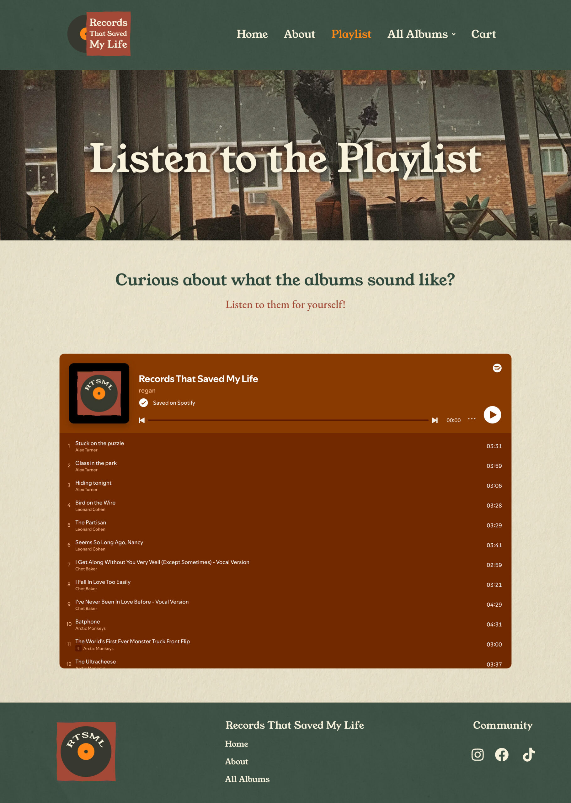 Records That Saved My Life connects music history and personal anecdotes to create an online experience that ties typography, color, and photography to express the emotions felt while listening to certain albums. It was created using WordPress, and features detailed and personalized descriptions for every record, a Spotify playlist for those who wish to hear the songs first, and carefully color-graded photography.